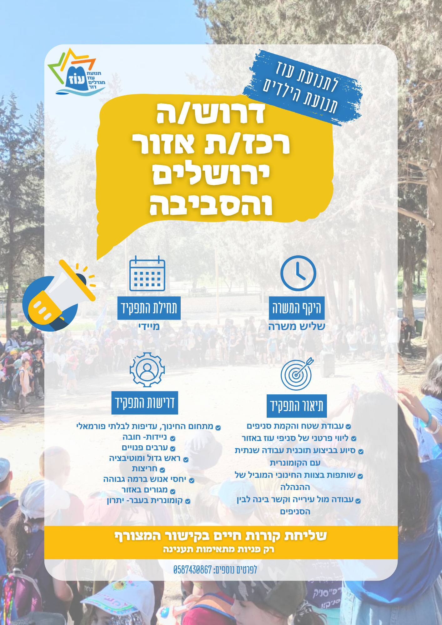 לתנועת עוז דרוש/ה רכז/ת אזור ירושלים והסביבה