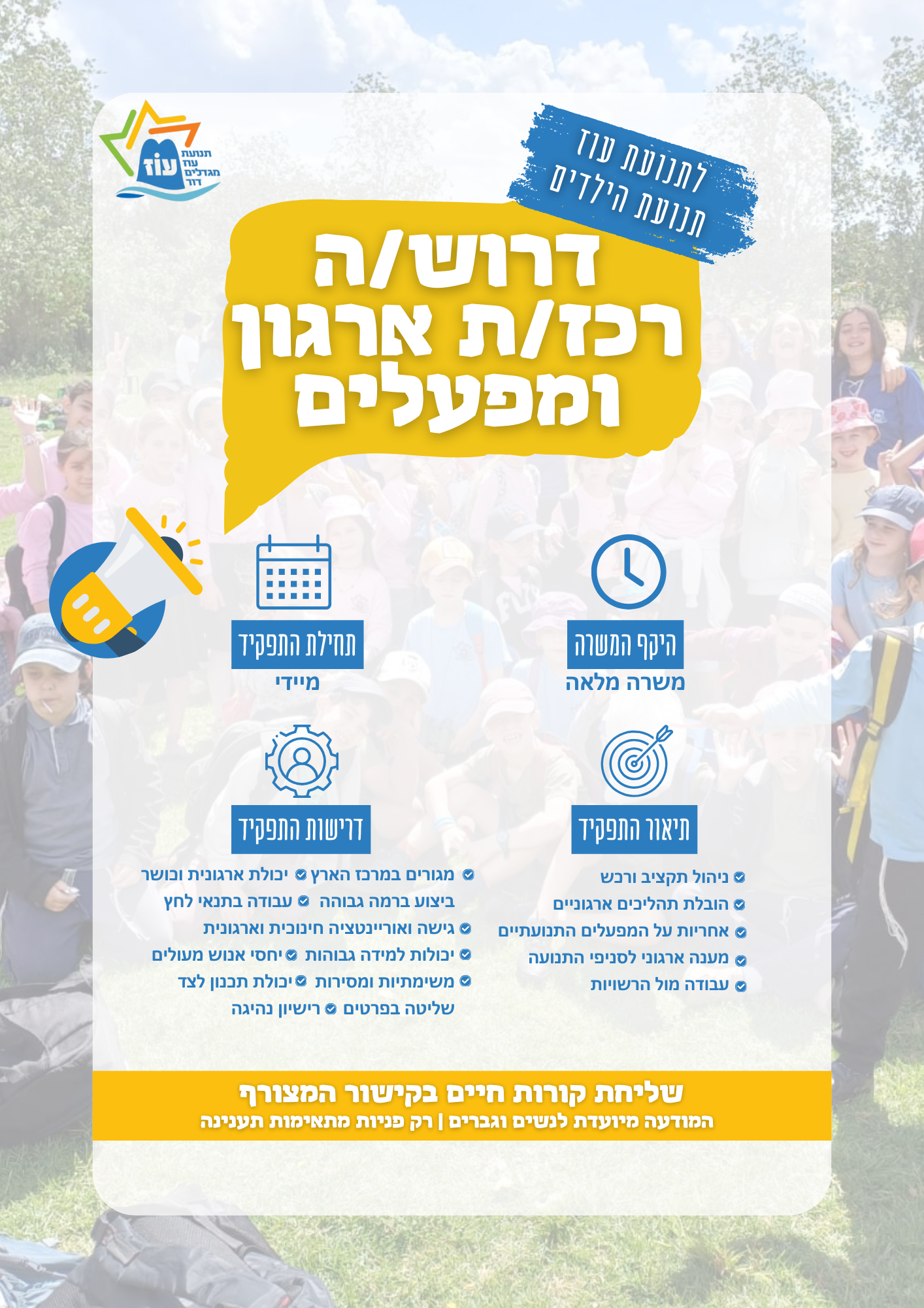 לתנועת עוז דרוש/ה רכז/ת ארגון ומפעלים